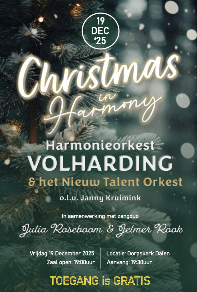 Vier de magie van kerst samen met ons tijdens een sfeervol kerstconcert in onze Dorpskerk. Het zangduo Julia Roseboom en Jelmer Rook zorgt voor een extra feestelijke sfeer met prachtige vocale bijdragen. Laat je meevoeren door muziek die verbindt en verwarmt. Iedereen welkom! | ||